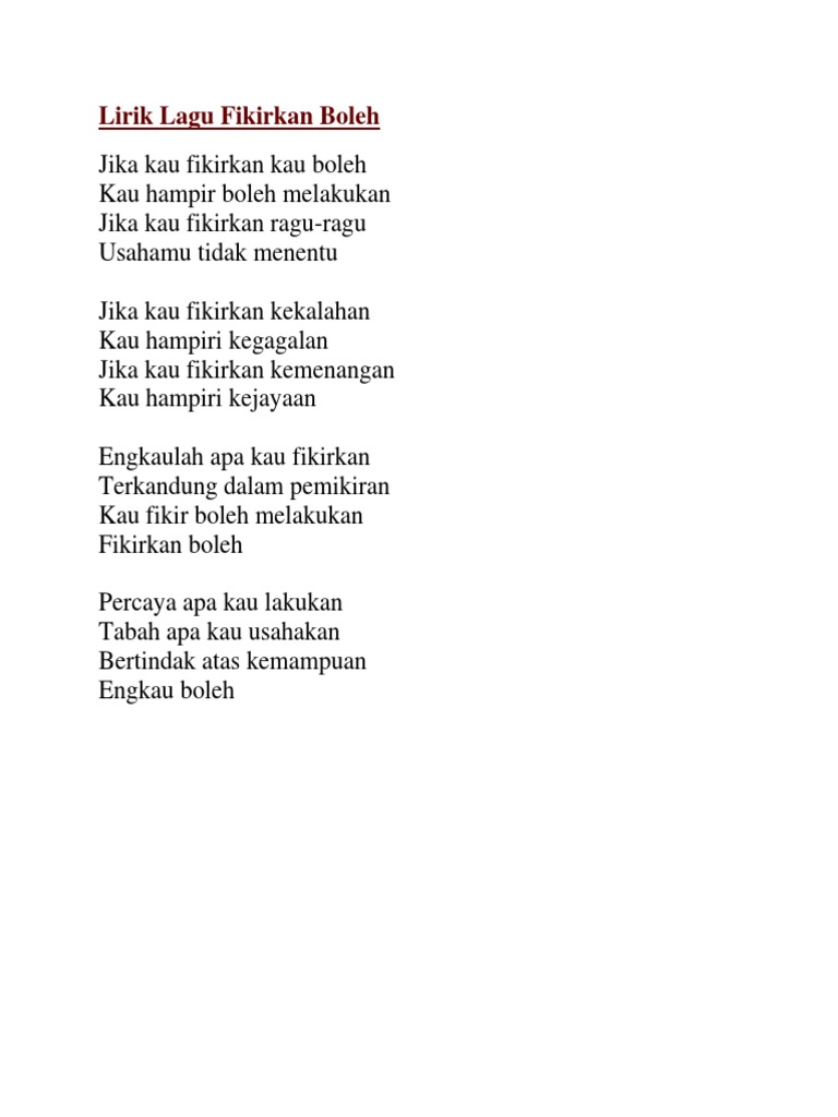 Lirik Lagu Fikirkan Kau Boleh Pdf